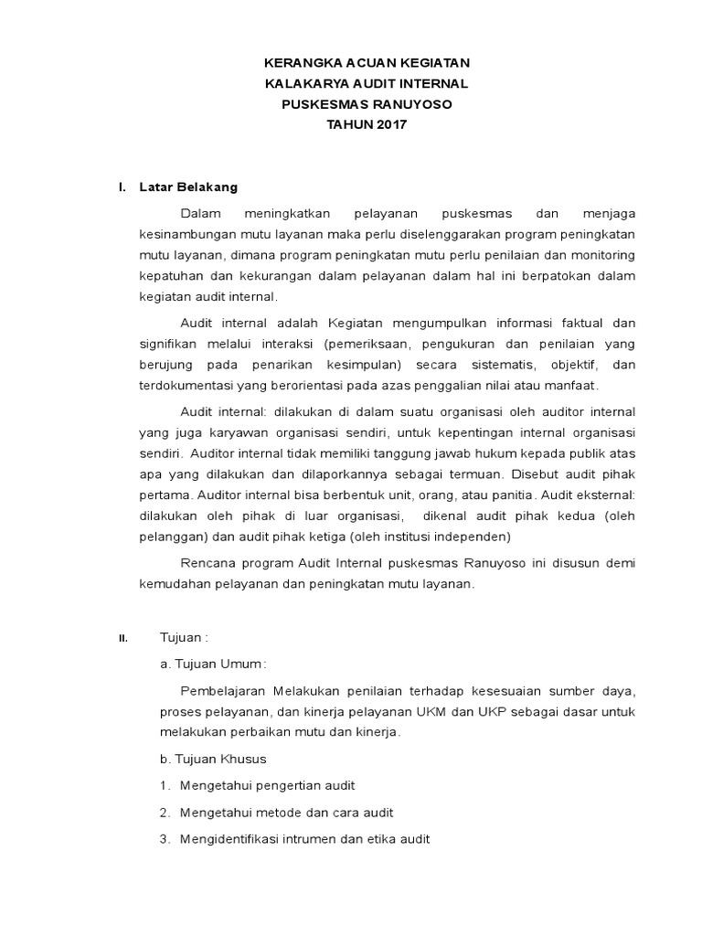 Rencana program Audit Internal puskesmas Ranuyoso ini disusun demi