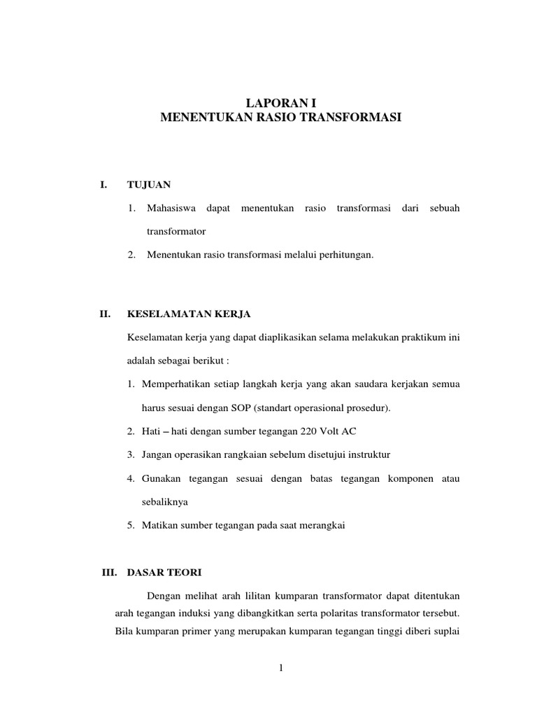 1. Mahasiswa dapat menentukan rasio transformasi dari sebuah