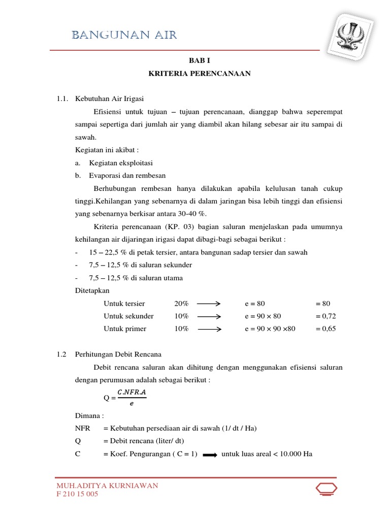 1.3 Perhitungan Dimensi Saluran