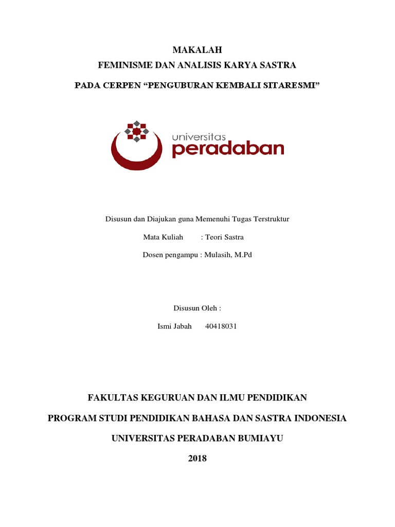 Penguburan Kembali Sitaresmi dianalisis dengan tinjauan sastra feminis untuk mengatahui
