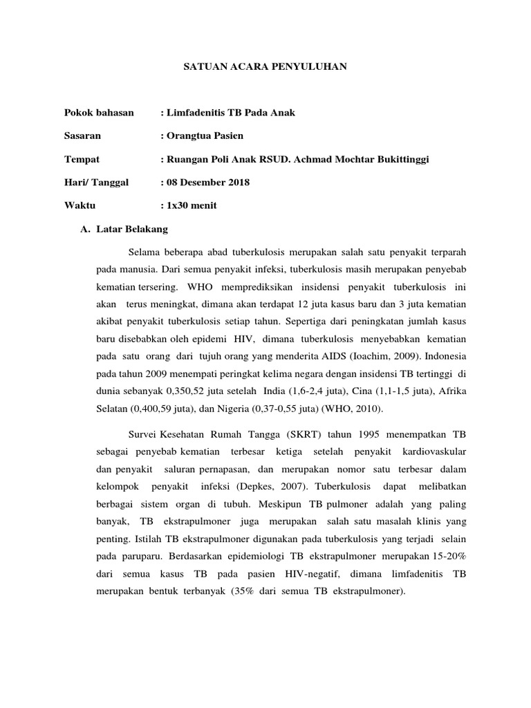 penting. Istilah TB ekstrapulmoner digunakan pada tuberkulosis yang terjadi selain