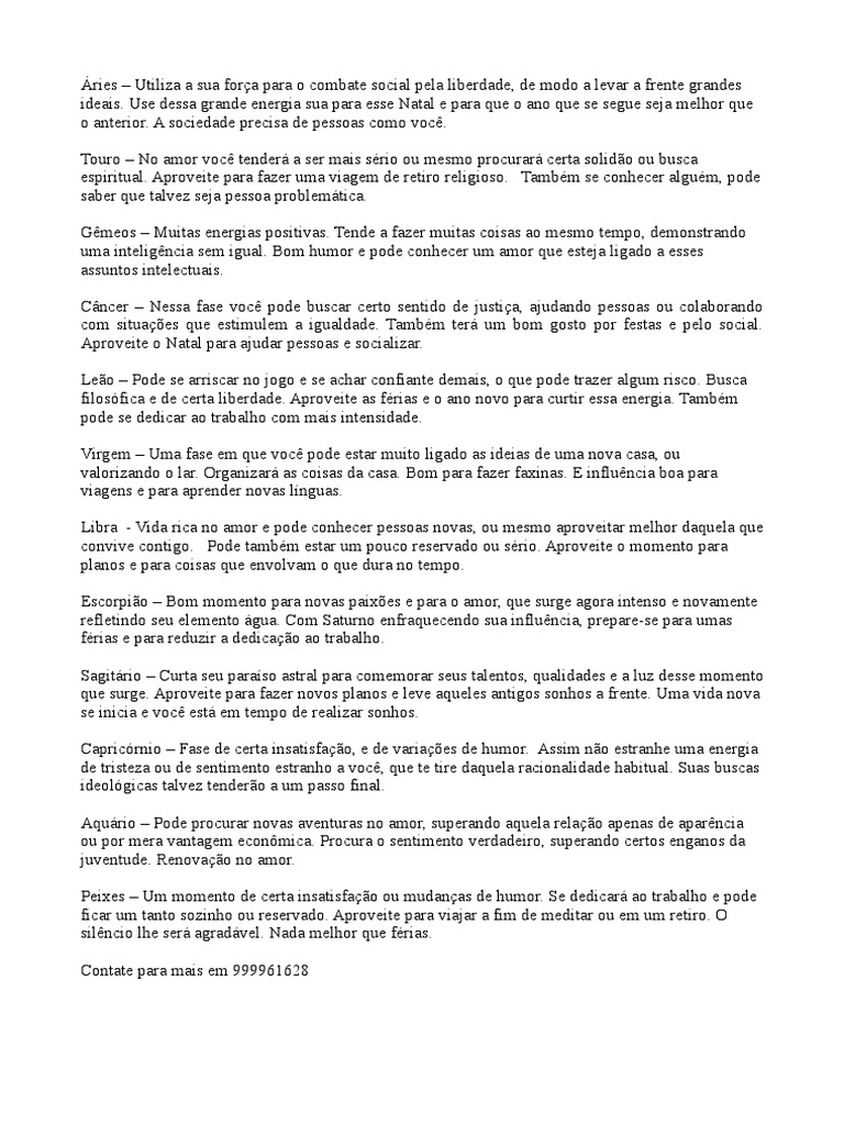 ideais. Use dessa grande energia sua para esse Natal e para que o ano que se segue seja melhor que