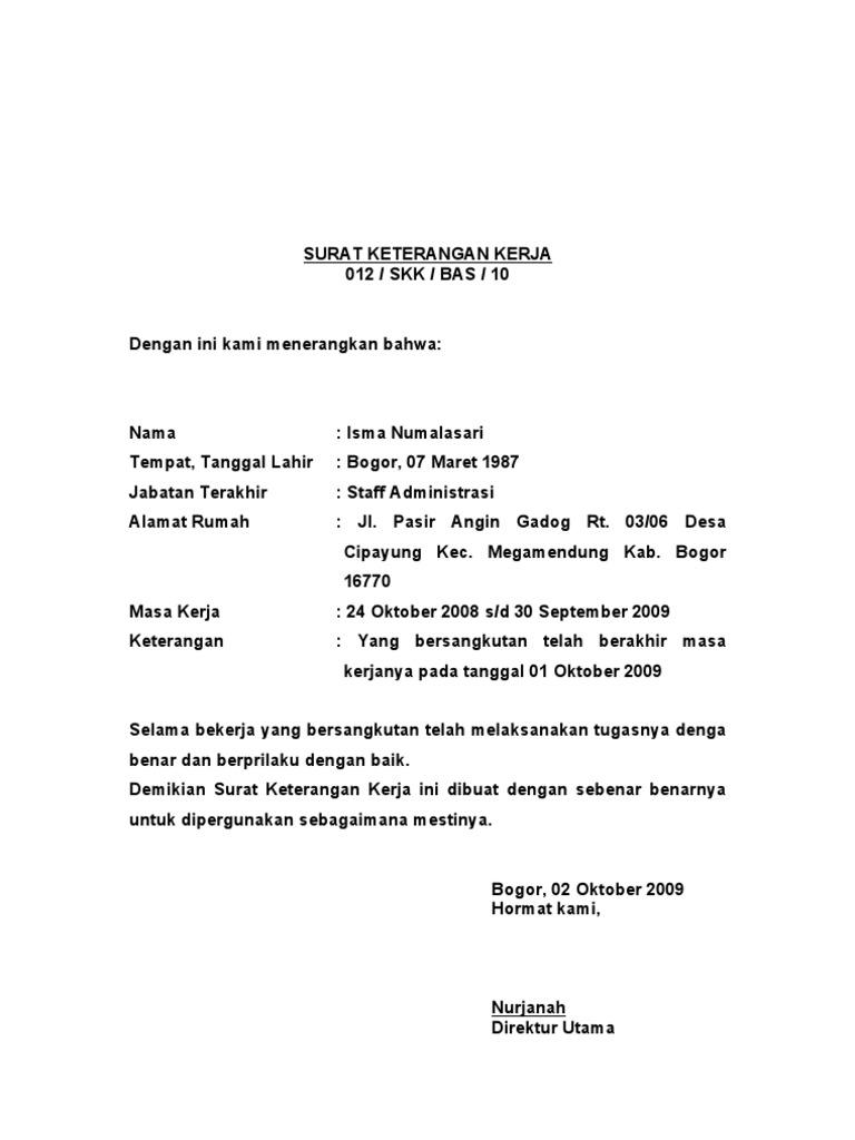 Demikian Surat Keterangan Kerja ini dibuat dengan sebenar benarnya