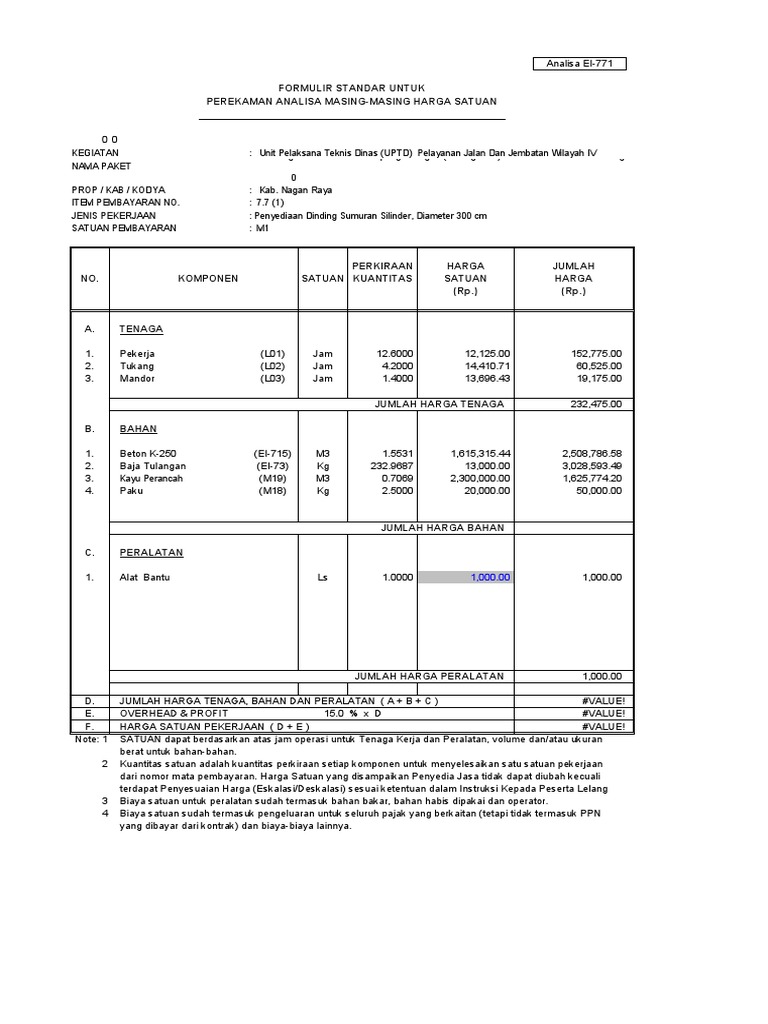 ITEM PEMBAYARAN NO. : 7.7 (1) Analisa EI-771