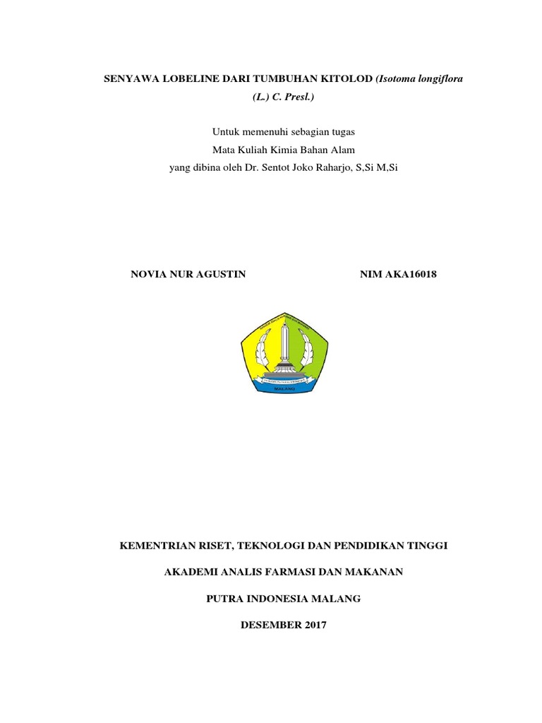 SENYAWA LOBELINE DARI TUMBUHAN KITOLOD (Isotoma longiflora
