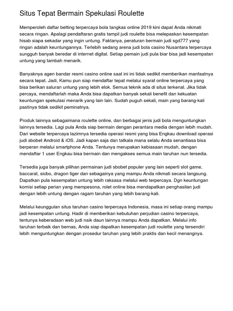 secara ringan. Apalagi pendaftaran gratis tampil judi roulette bisa melepaskan kesempatan