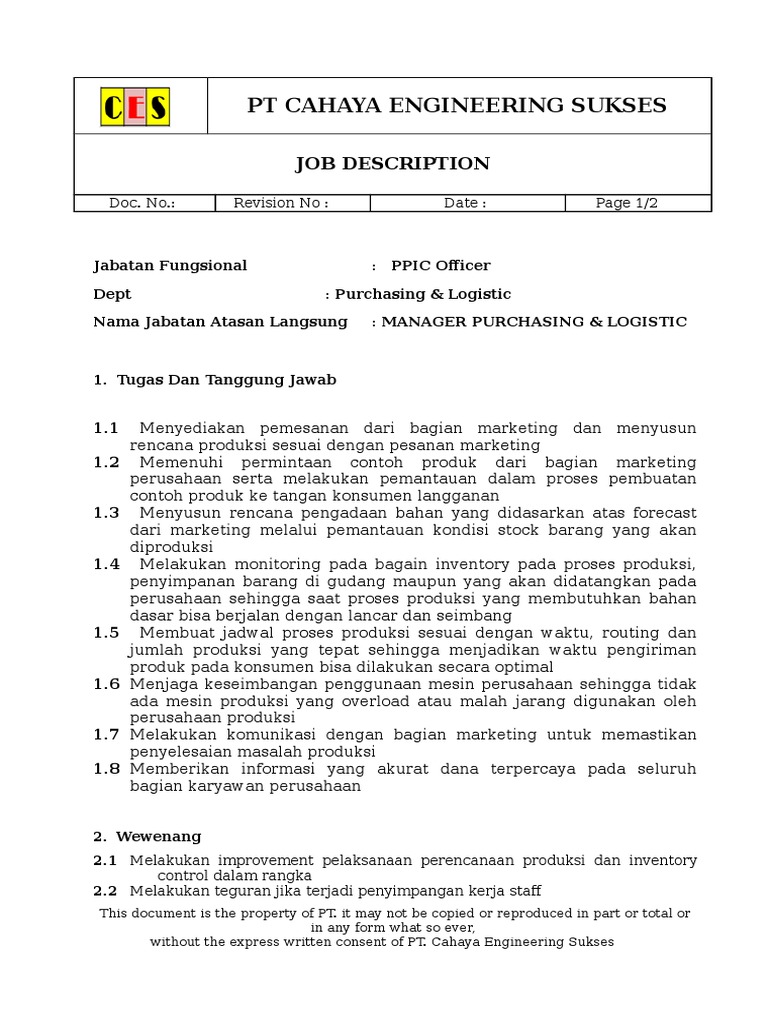 3.1 Level Jabatan : PPIC Oficer