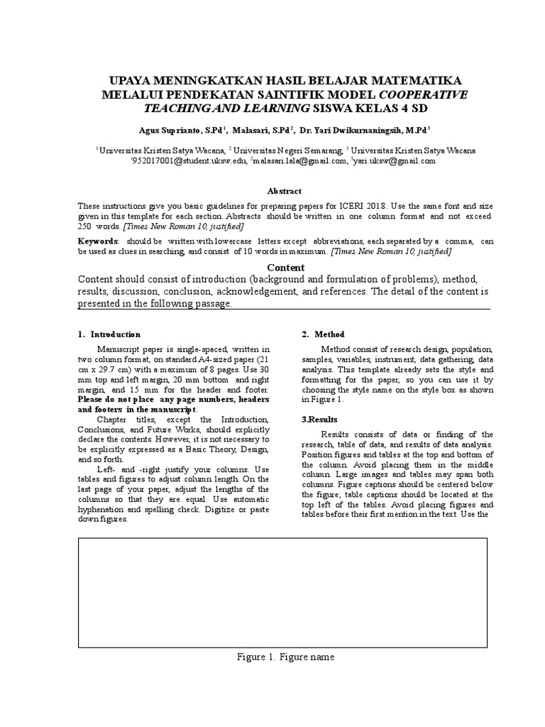 Manuscript paper is single-spaced, written in Method consist of research design, population,