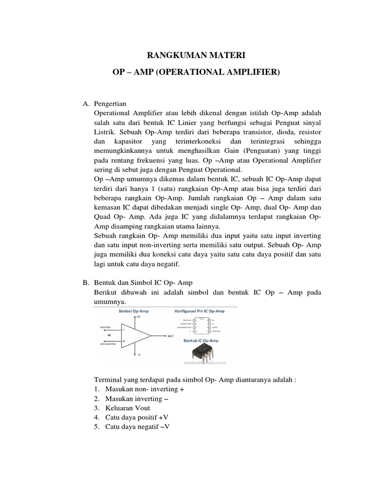 Operational Amplifier atau lebih dikenal dengan istilah Op-Amp adalah