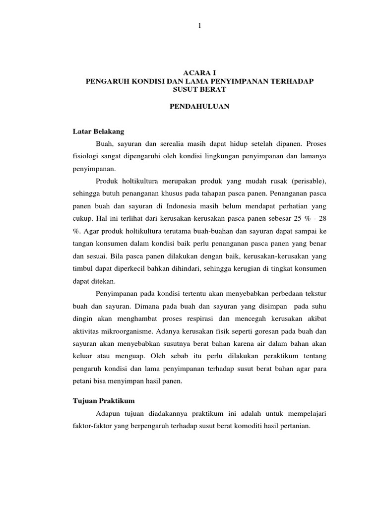 faktor-faktor yang berpengaruh terhadap susut berat komoditi hasil pertanian.