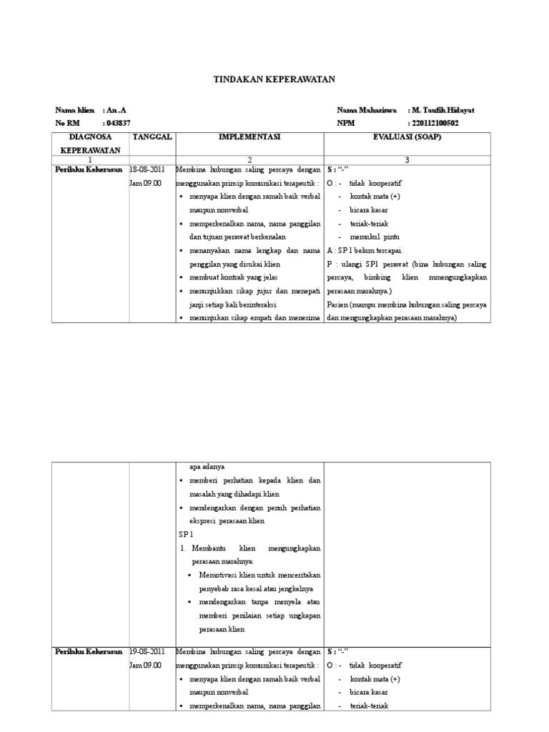 jenis-jenis tindak kekerasan yang P : lanjutkan interaksi SP2