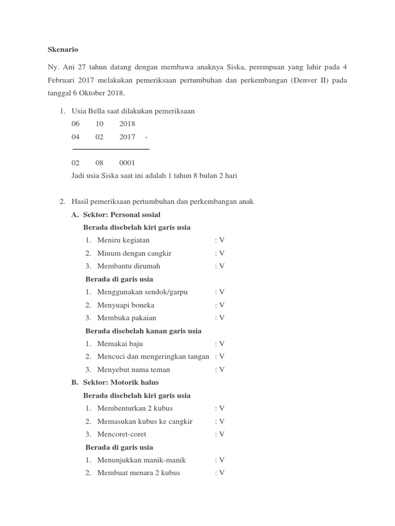 melakukan 3 uji item yang berada disebelah kiri garis usia dan An. Siska juga dapat