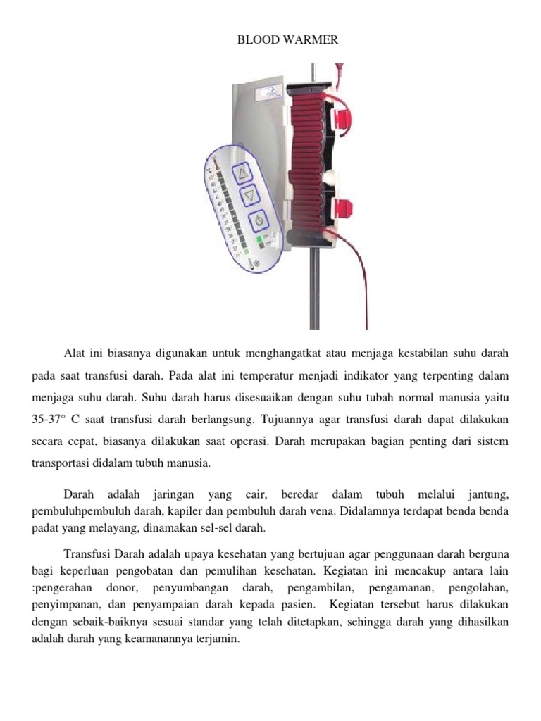 pada saat transfusi darah. Pada alat ini temperatur menjadi indikator yang terpenting dalam