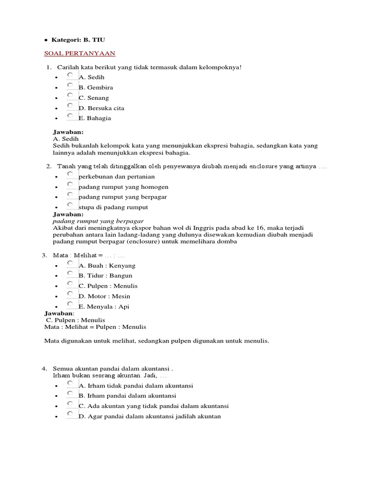 pilihan yang tepat. Jika, pada pilihan E di ubah menjadi “semua” bukan “sebagian” maka bisa