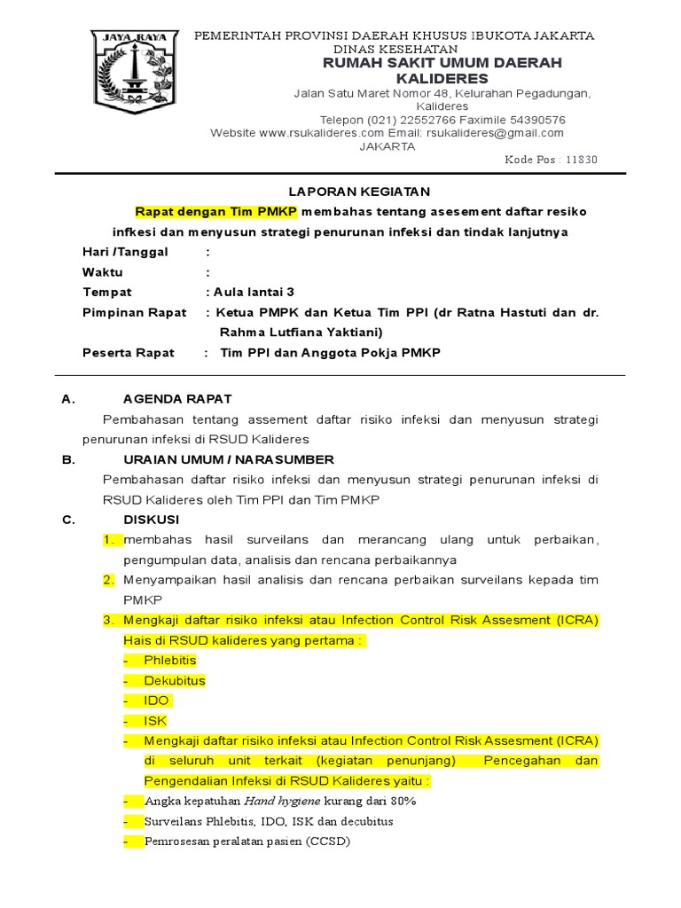 Pembahasan daftar risiko infeksi dan menyusun strategi penurunan infeksi di