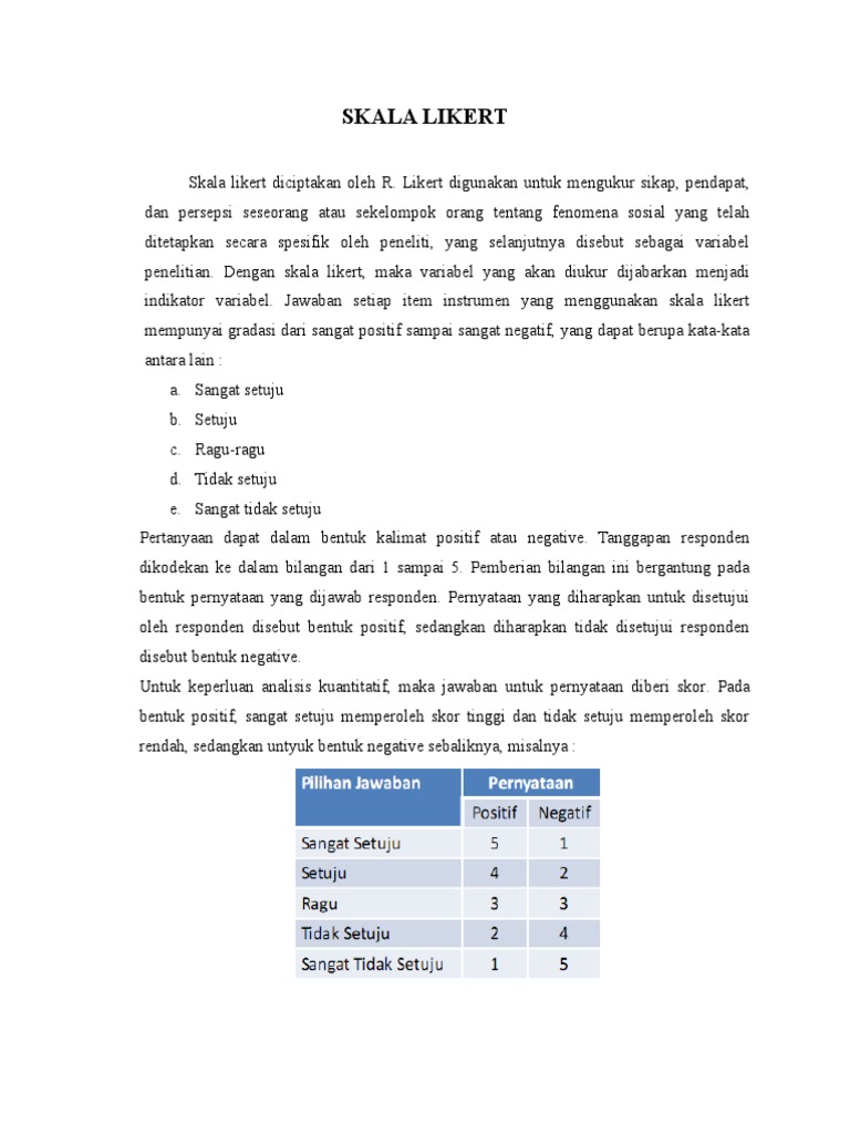 Skala likert diciptakan oleh R. Likert digunakan untuk mengukur sikap, pendapat,