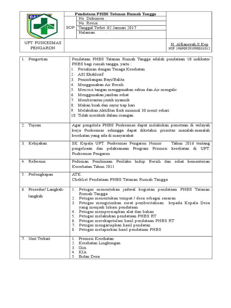 6. Prosedur/ Langkah- 1. Petugas menentukan jadwal kegiatan pendataan PHBS Tatanan
