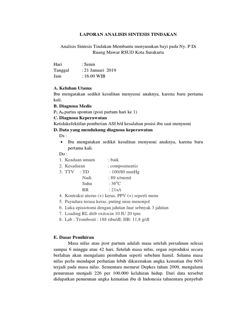 Analisis Sintesis Tindakan Membantu menyusukan bayi pada Ny. P Di
