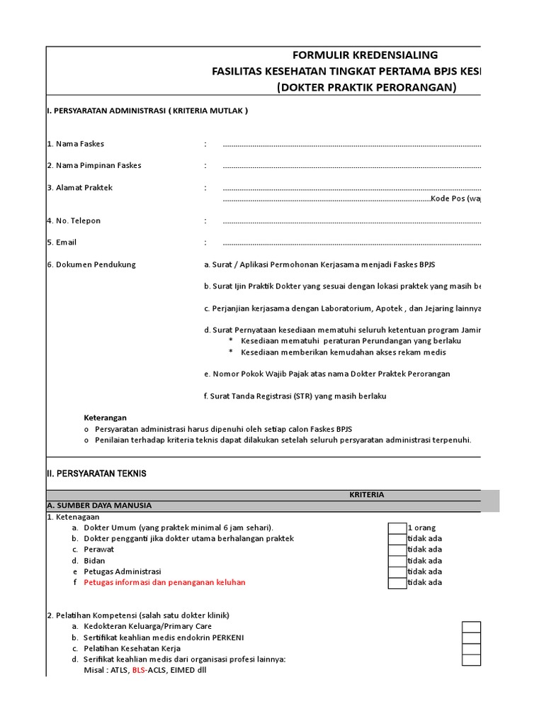 o Persyaratan administrasi harus dipenuhi oleh setiap calon Faskes BPJS