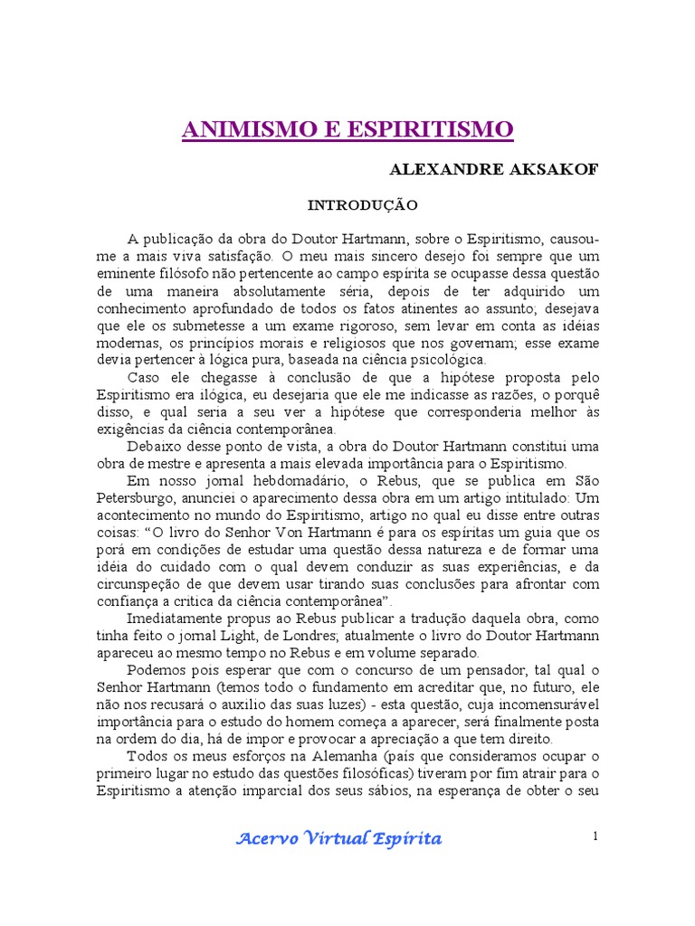 (32) A palavra animismo foi a principio empregada por Stahl, se não me engano; em seu