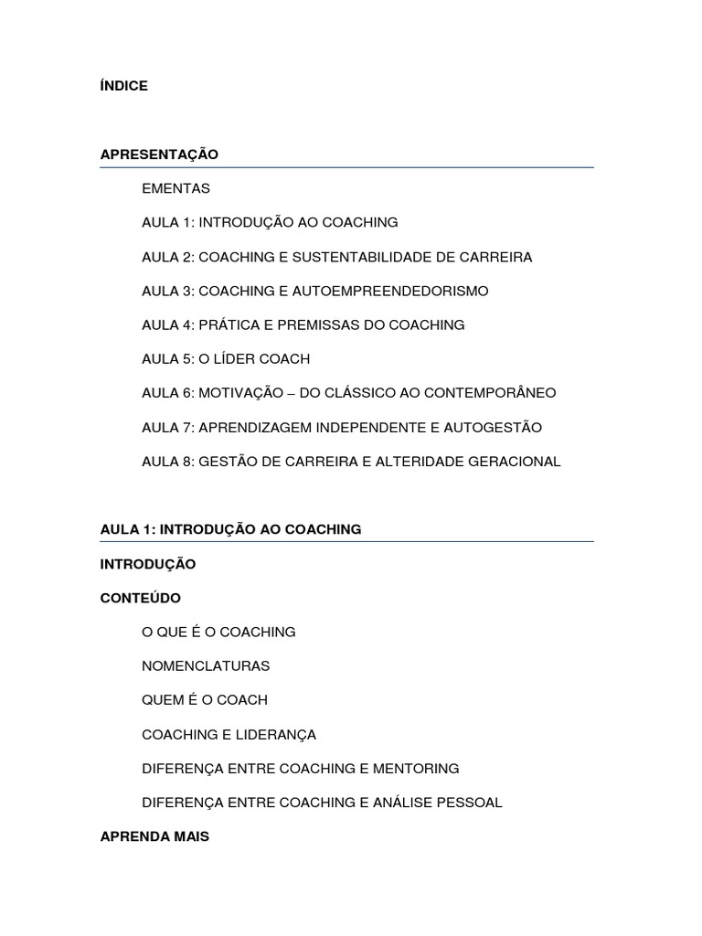 AULA 1: INTRODUÇÃO AO COACHING