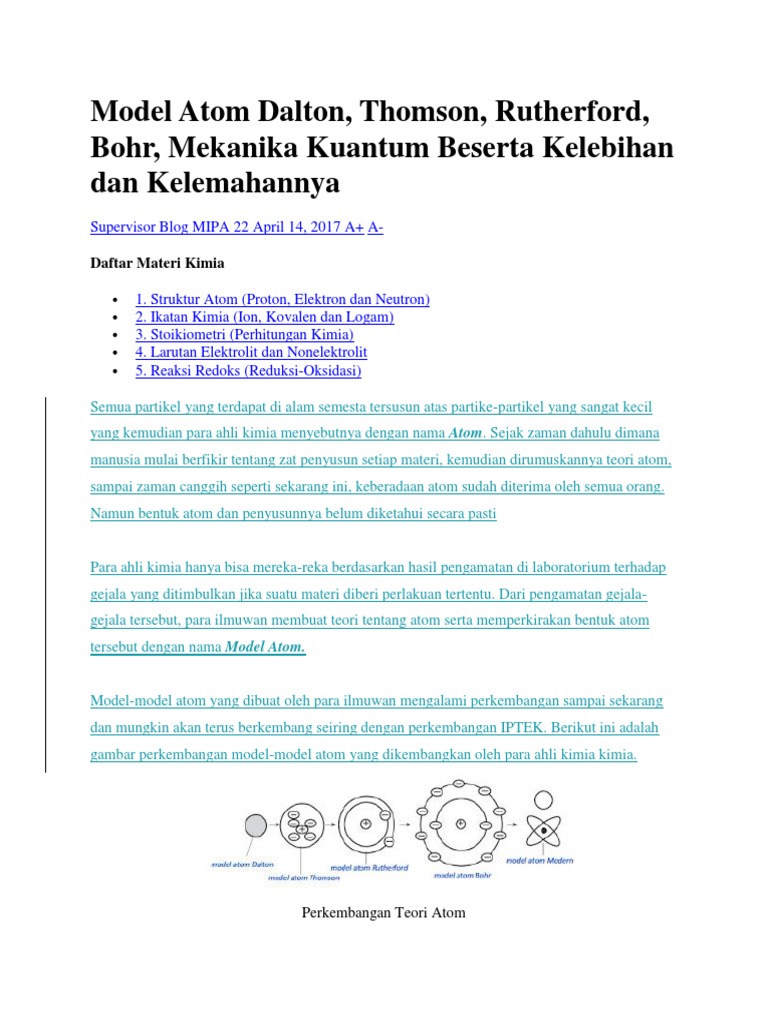 Rutherford, Bohr dan Mekanika Kuantum (model atom modern). Semoga dapat bermanfaat