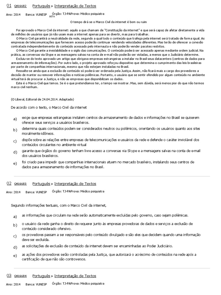 a) Existe algumas pessoas que questionam o Marco Civil da internet, alegando de que foi aprovado de maneira