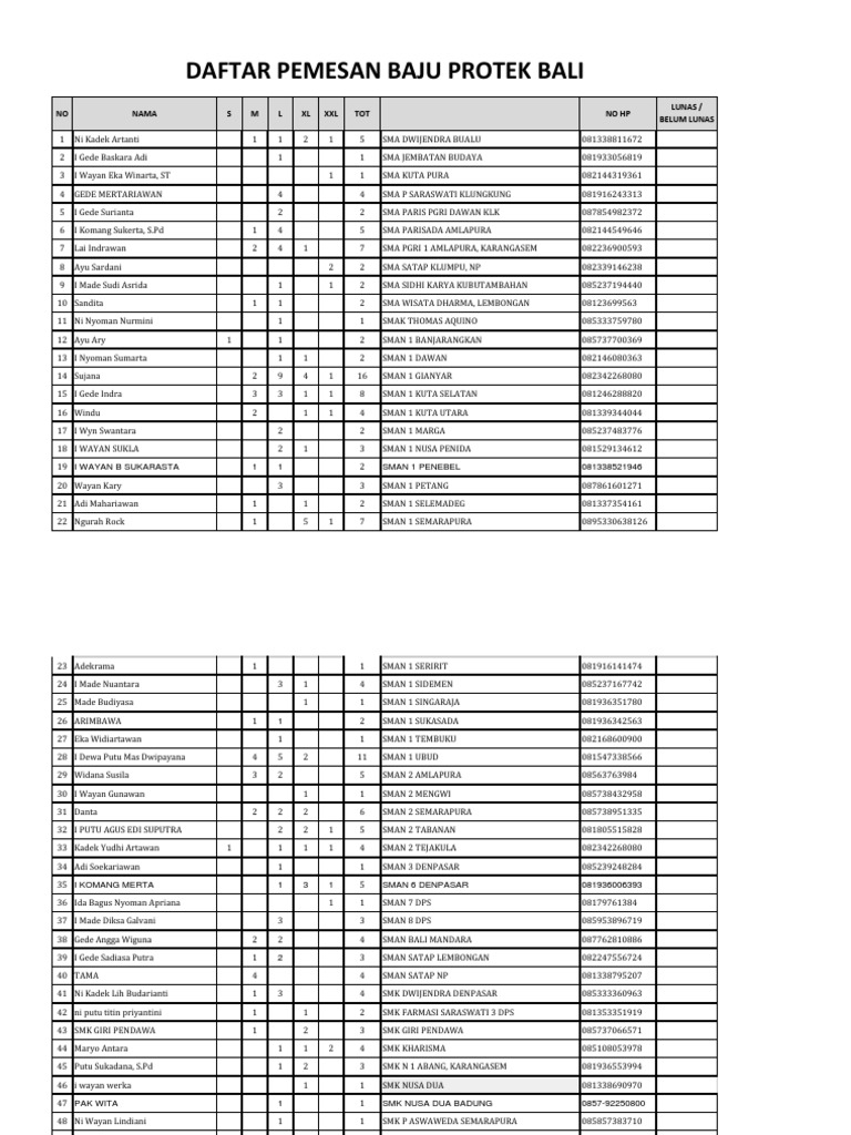 DAFTAR PEMESAN BAJU PROTEK BALI