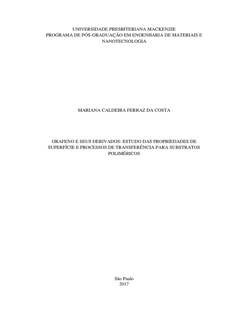 1. Processos de transferência 2. Polímero 3. Grafeno e seus derivados; 4.