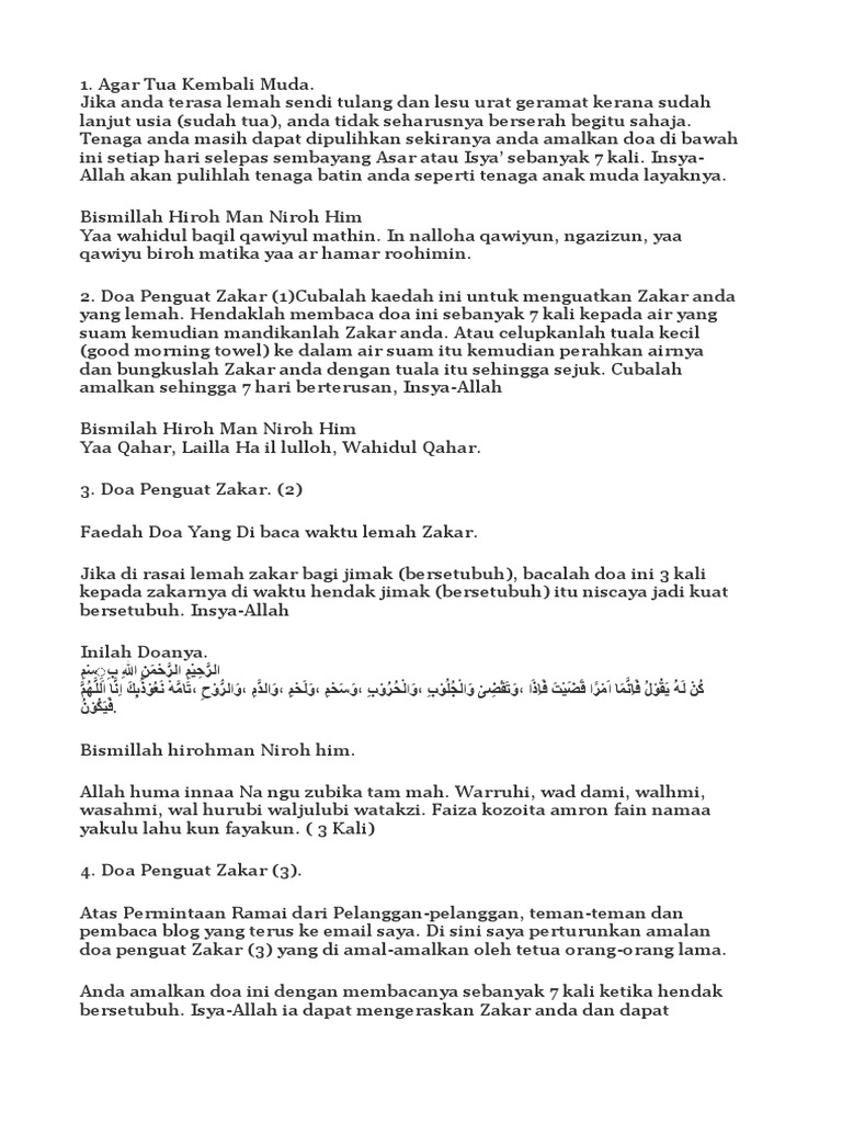 doa penguat Zakar (3) yang di amal-amalkan oleh tetua orang-orang lama.
