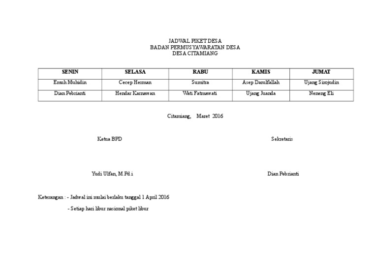 Keterangan : - Jadwal ini mulai berlaku tanggal 1 April 2016