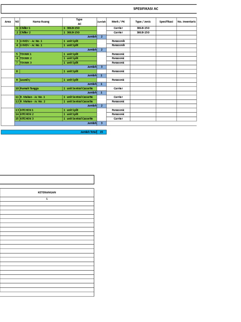 Area NO Nama Ruang Jumlah Merk / PK Type / Jenis KAPASITAS SUMBER