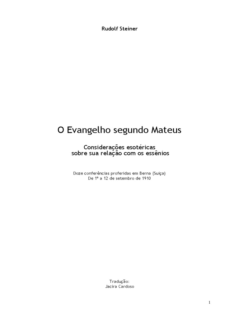 Um ciclo de conferências sobre esse evangelho viria a ser proferido posteriormente, de 15 a 24.9.1912, em