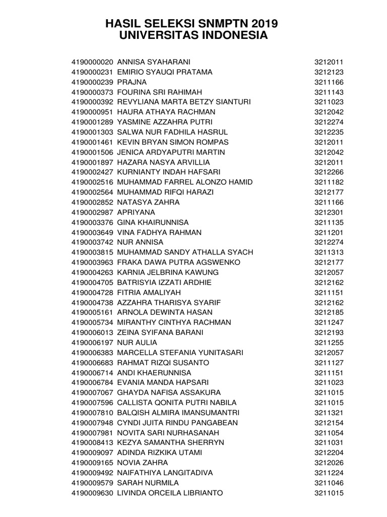 HASIL SELEKSI SNMPTN 2019