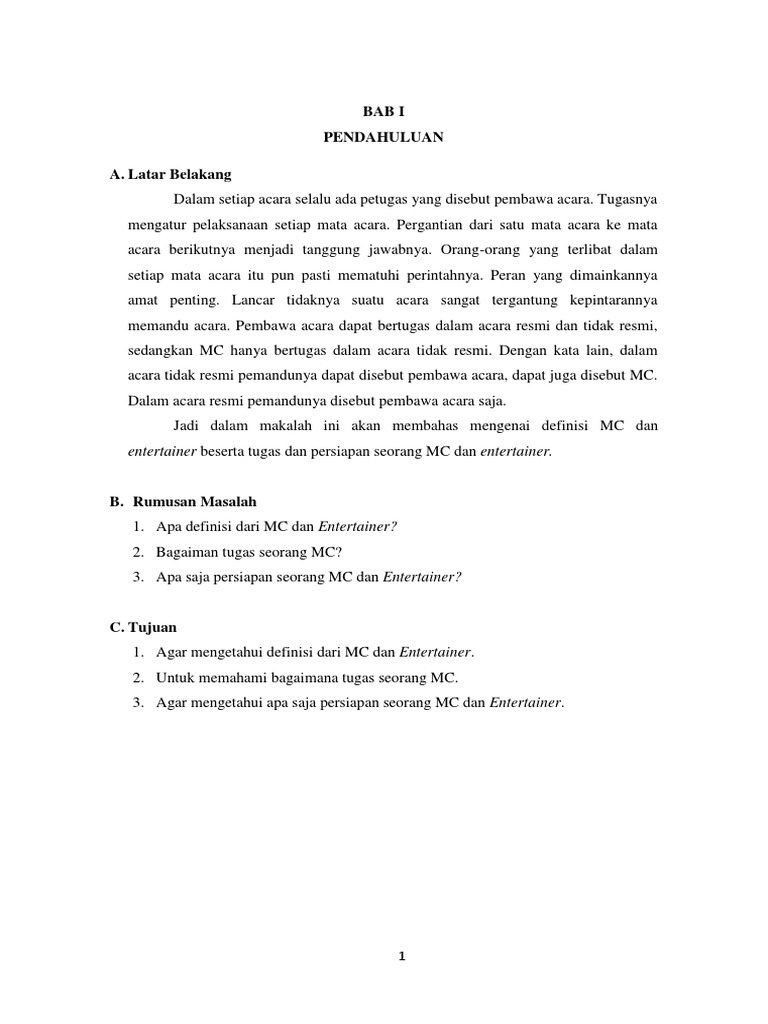 1. Agar mengetahui definisi dari MC dan Entertainer.