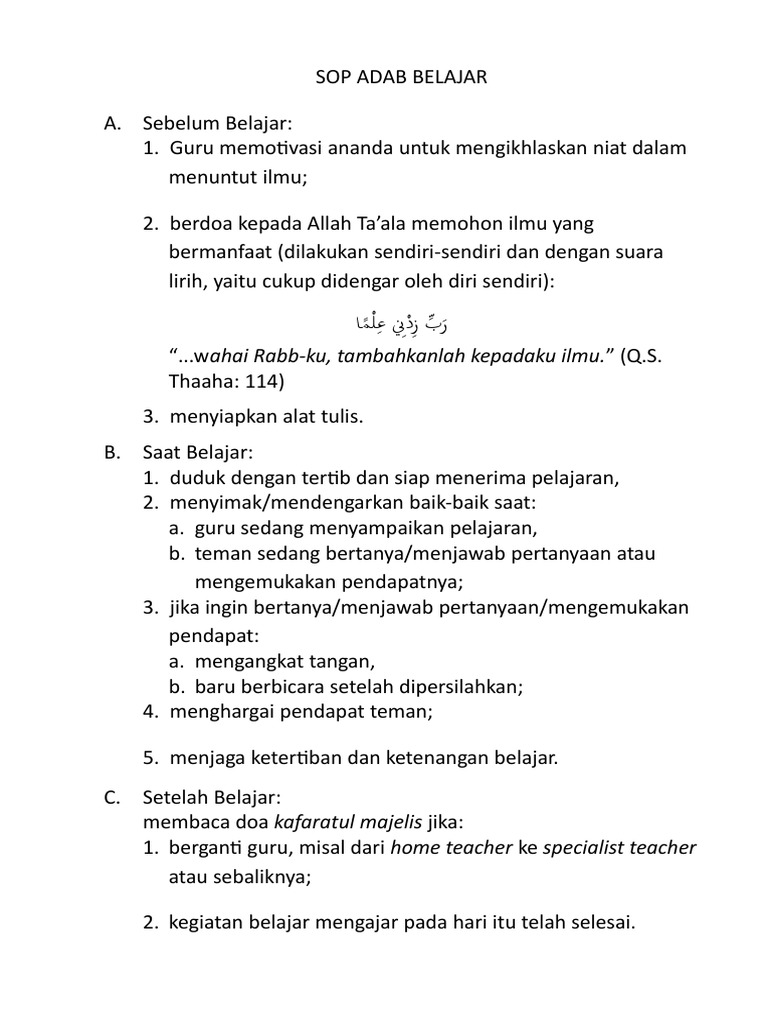 1. duduk dengan tertib dan siap menerima pelajaran,