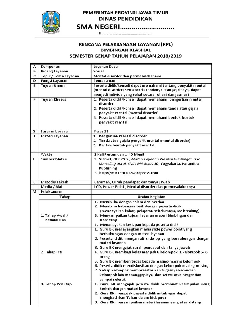 RENCANA PELAKSANAAN LAYANAN (RPL)