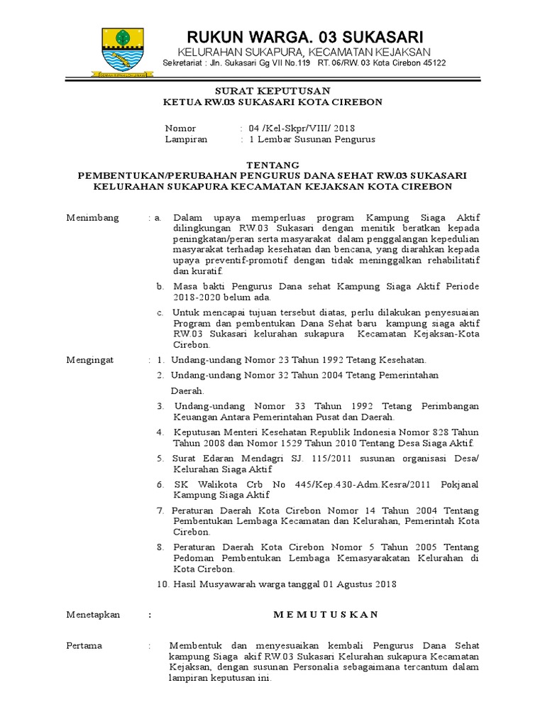 LAMPIRAN : KEPUTUSAN RW.03 SUKASARI KOTA CIREBON.