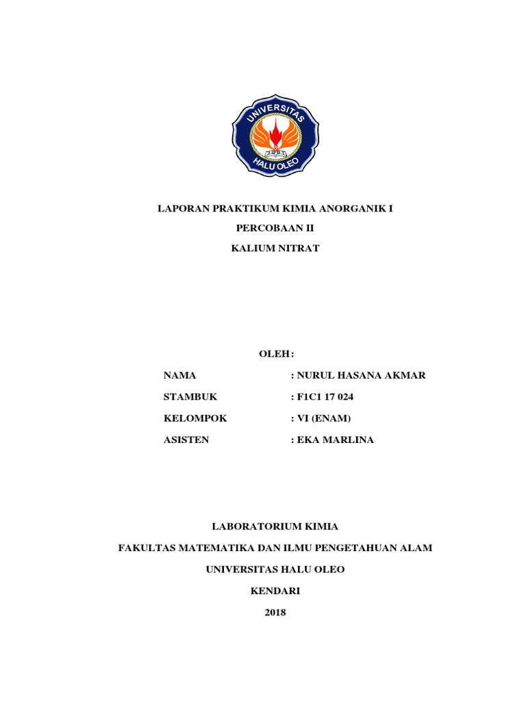 LAPORAN PRAKTIKUM KIMIA ANORGANIK I