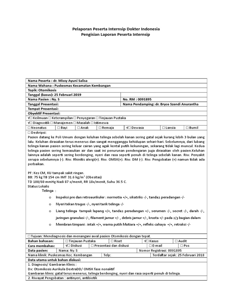 □ Tujuan: Mendiagnosis dan menangani awal pasien Otomikosis dengan tepat.