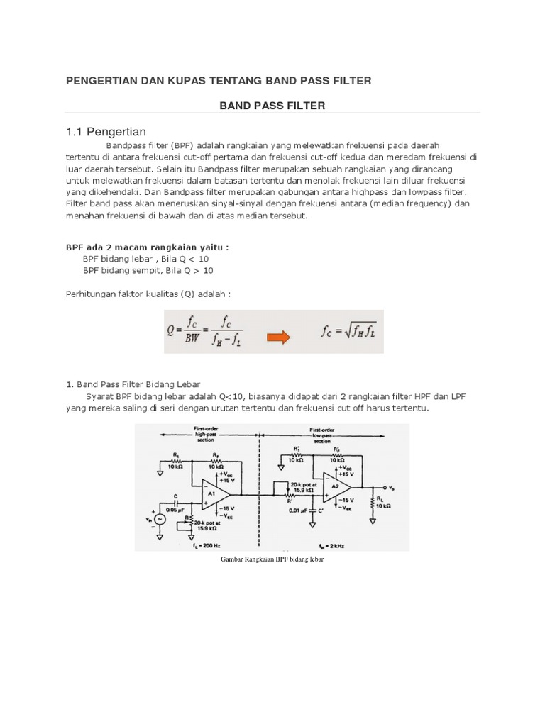 Bandpass filter (BPF) adalah rangkaian yang melewatkan frekuensi pada daerah