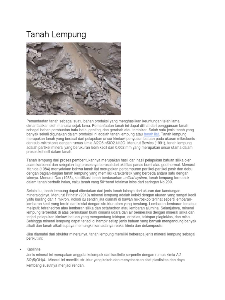 sebagai bahan pembuatan batu-bata, genting, dan gerabah atau tembikar. Salah satu jenis tanah yang