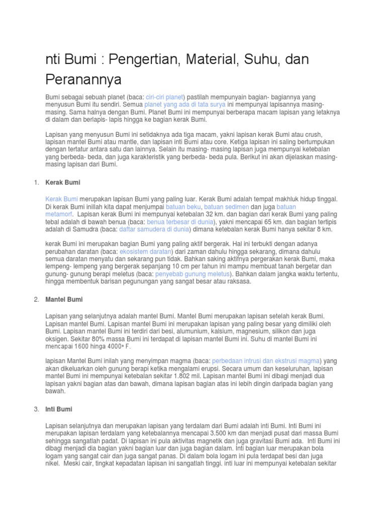 nti Bumi : Pengertian, Material, Suhu, dan