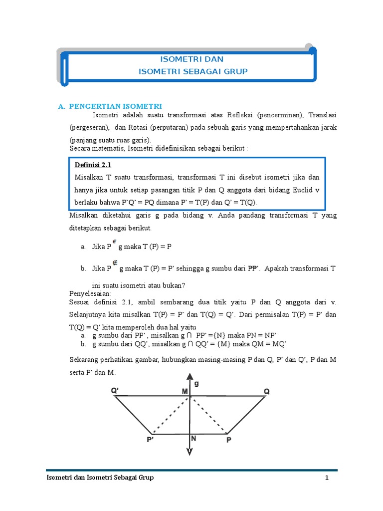 Isometri adalah suatu transformasi atas Refleksi (pencerminan), Translasi