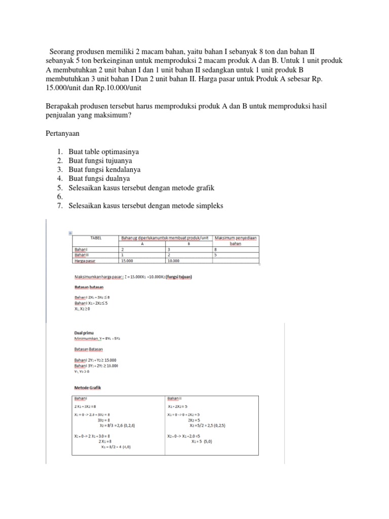 Berapakah produsen tersebut harus memproduksi produk A dan B untuk memproduksi hasil