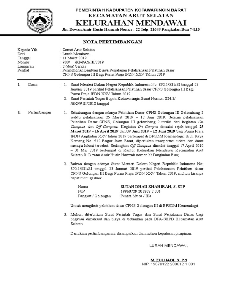 II. Pertimbangan 1. Sehubungan dengan adanya Pelatihan Dasar CPNS Golongan III Gelombang 2