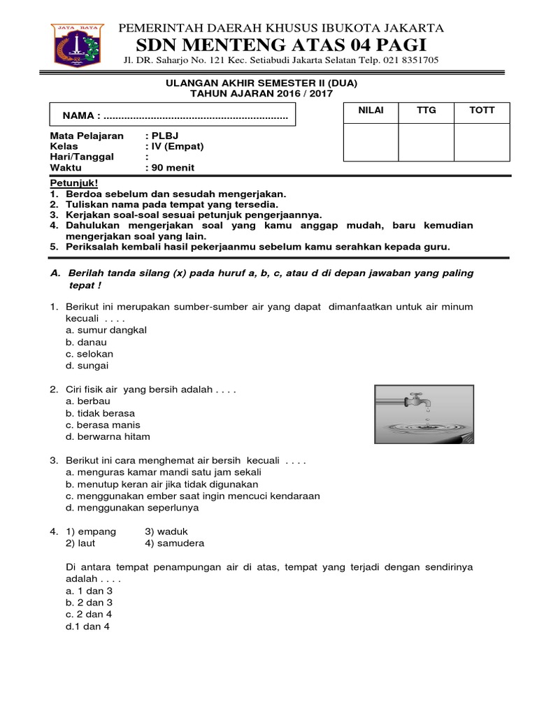 A. Berilah tanda silang (x) pada huruf a, b, c, atau d di depan jawaban yang paling