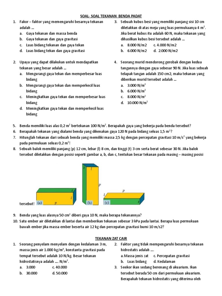 9. Benda yang luas alasnya 50 cm2 diberi gaya 10 N, maka berapa tekanannya?