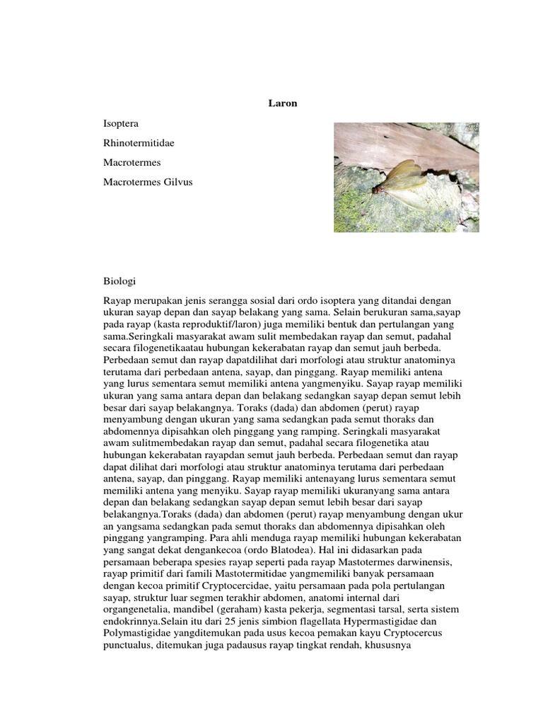 laron akan tumbuh pada saat rayap muda tumbuh menjadi rayap dewasa dan bisa