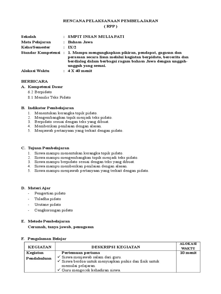 RENCANA PELAKSANAAN PEMBELAJARAN